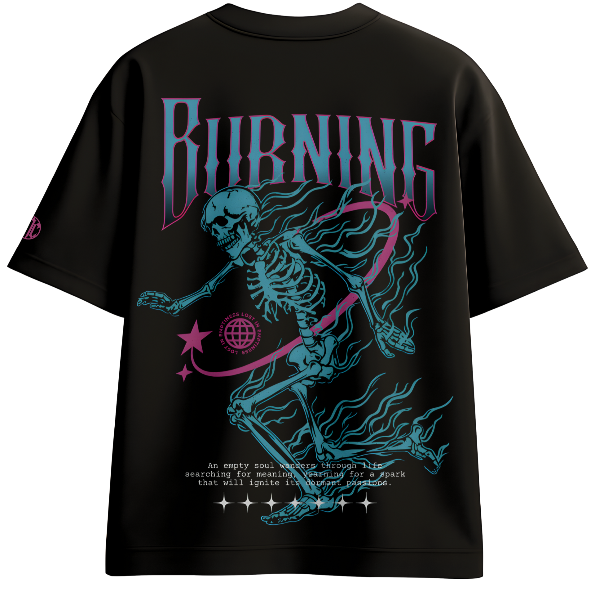 This isn’t just a t-shirt — it’s a wildfire stitched in fabric. Crafted from premium 200 GSM cotton, this soft yet enduring tee captures the spirit of a skeleton running through fire, a soul that refuses to die even as it burns. Every thread carries the weight of persistence, every wash a spark of rebellion against silence and ash. Built for the restless, the relentless, and those who know that even in flames, the soul runs free.